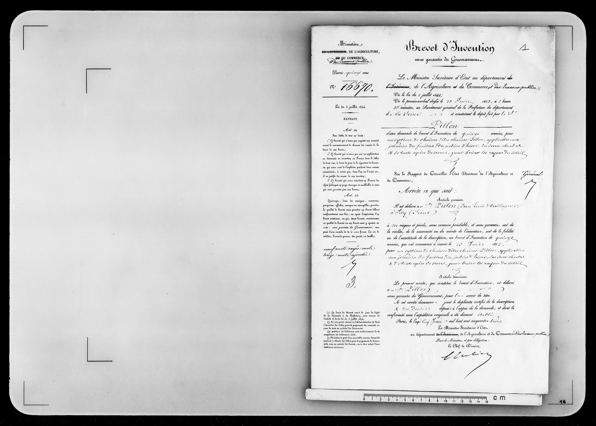 - Brevet d'invention de 15 ans